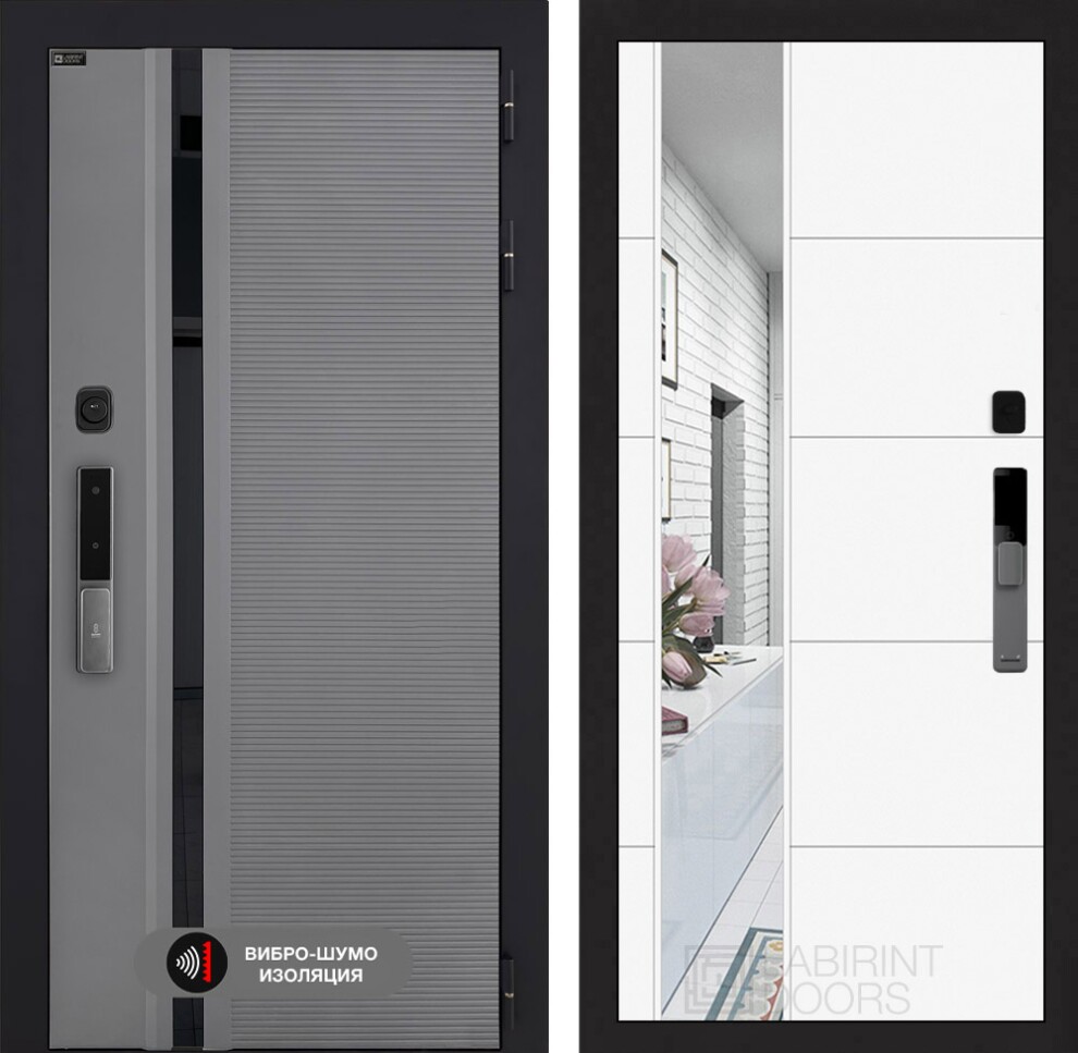 Входная дверь Пиано Смарт 2.0 с зеркалом 19 - Белый софт