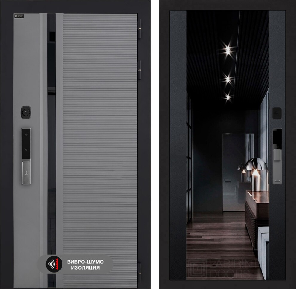 Входная дверь Пиано Смарт 2.0 с зеркалом (тонированное) Максимум - Черный кварц