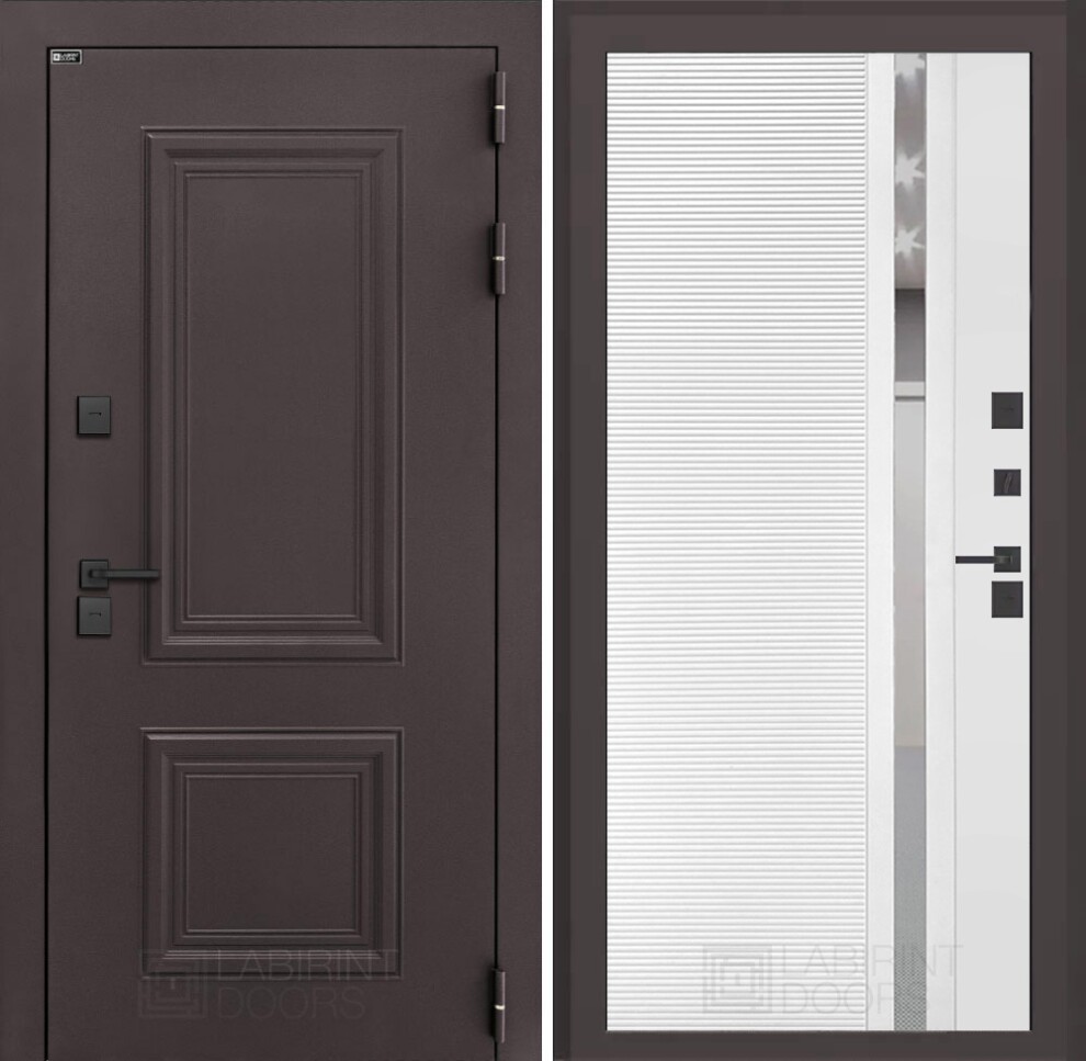 Входная дверь Полярис лайт 31 - Белый софт, зеркальная вставка с тонировкой