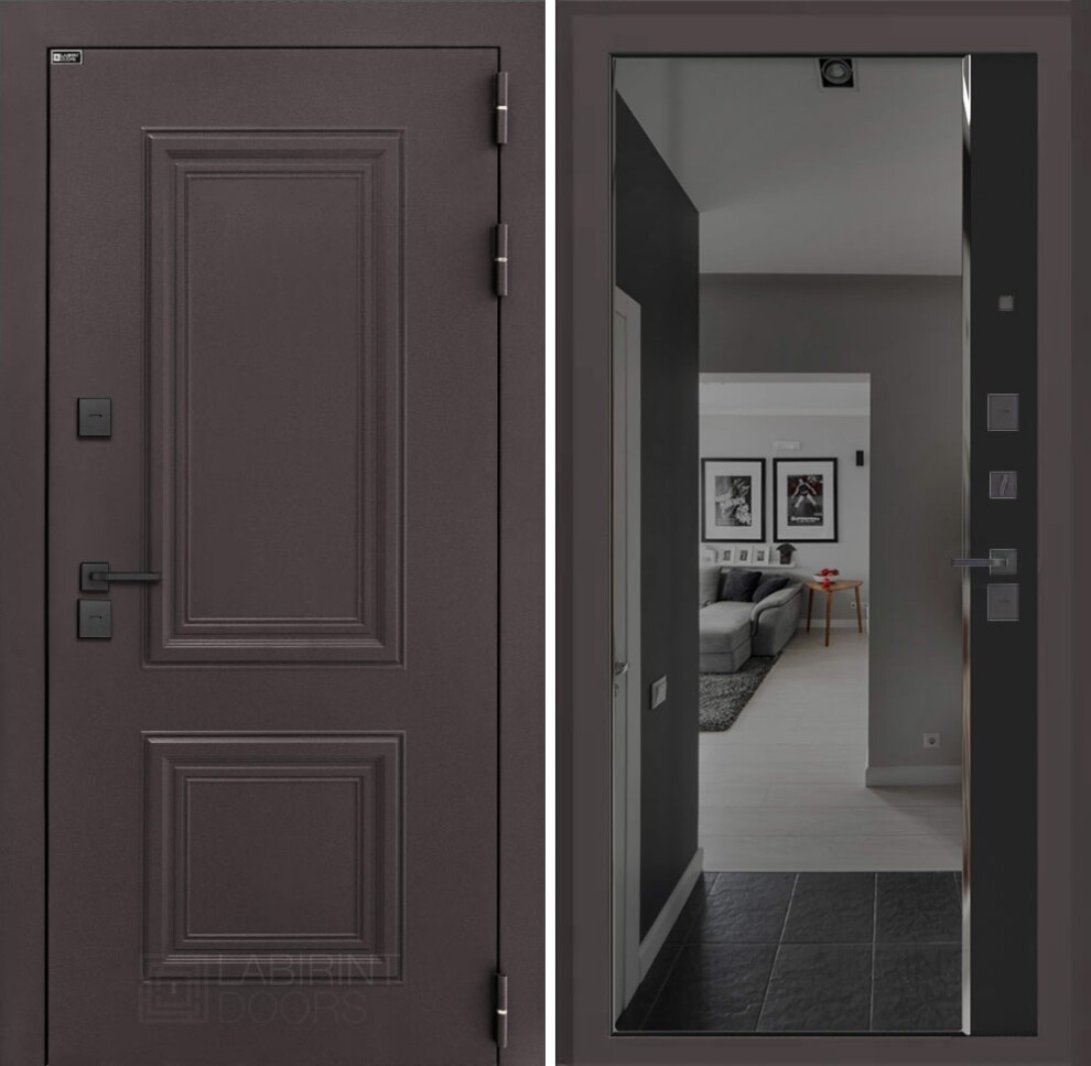 Входная дверь Полярис лайт с тонированным зеркалом Панорама - Черный кварц