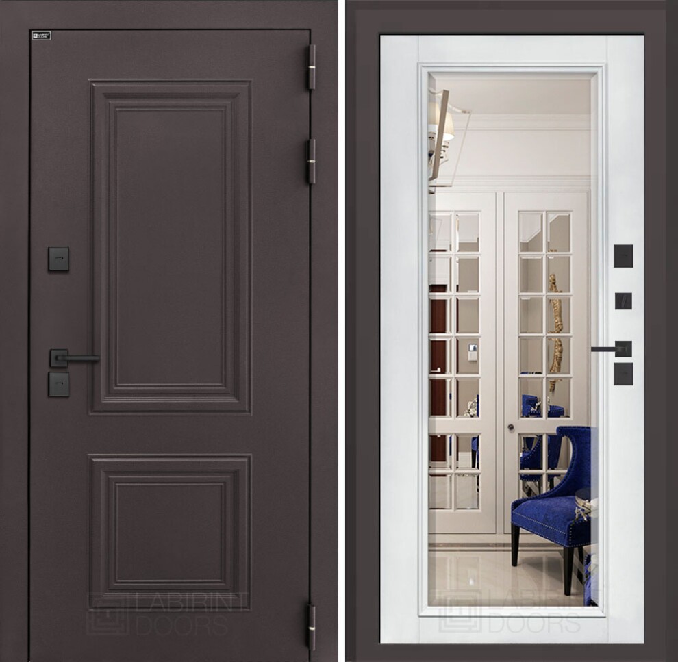 Входная дверь Полярис лайт с зеркалом Фацет - Белый софт