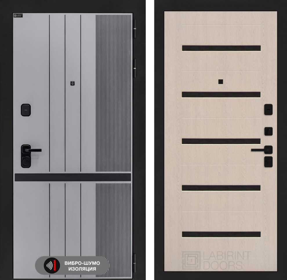 Входная дверь SKYLAB 01 - Беленый дуб, стекло черное
