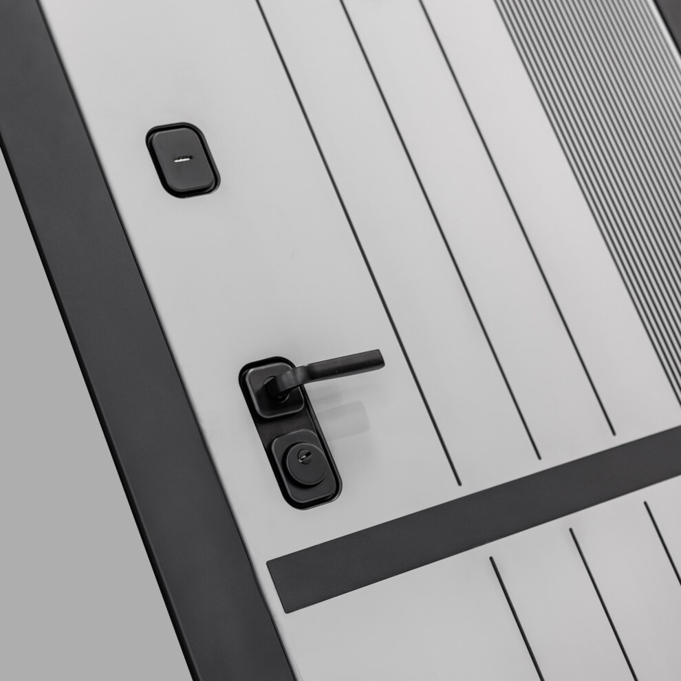 - Фурнитура в черном цвете: Броненакладка врезная, накладка со шторкой, глазок , дверная ручка, ночная задвижка. Цилиндр ключ-вертушка (производитель не регламентируется), регулируемый эксцентрик.