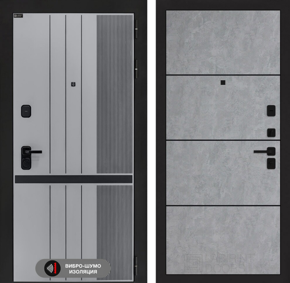 Входная дверь SKYLAB 25 - Бетон светлый, черный молдинг