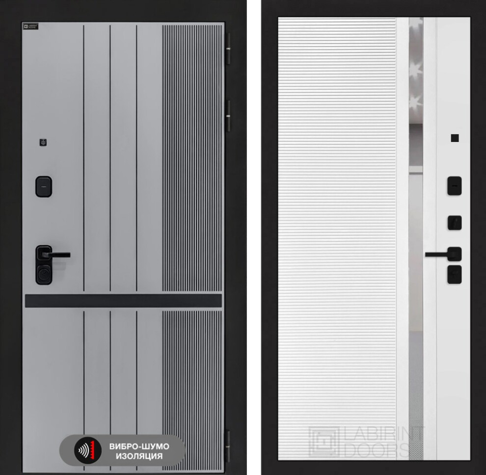 Входная дверь SKYLAB 31 - Белый софт, зеркальная вставка с тонировкой