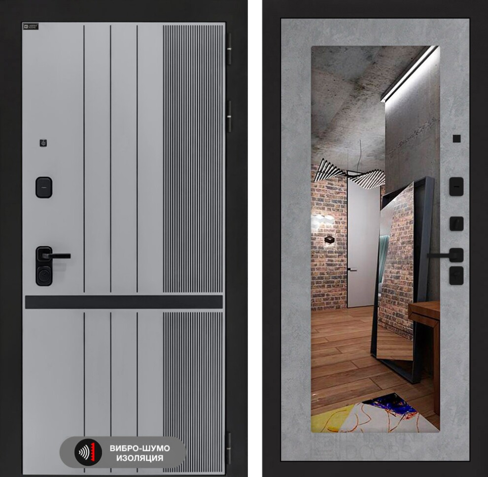 Входная дверь SKYLAB с Зеркалом 18 - Бетон светлый