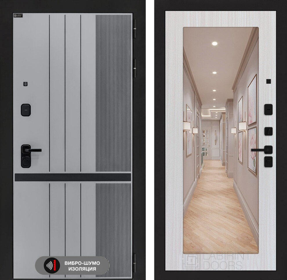 Входная дверь SKYLAB с Зеркалом 18 - Сандал белый