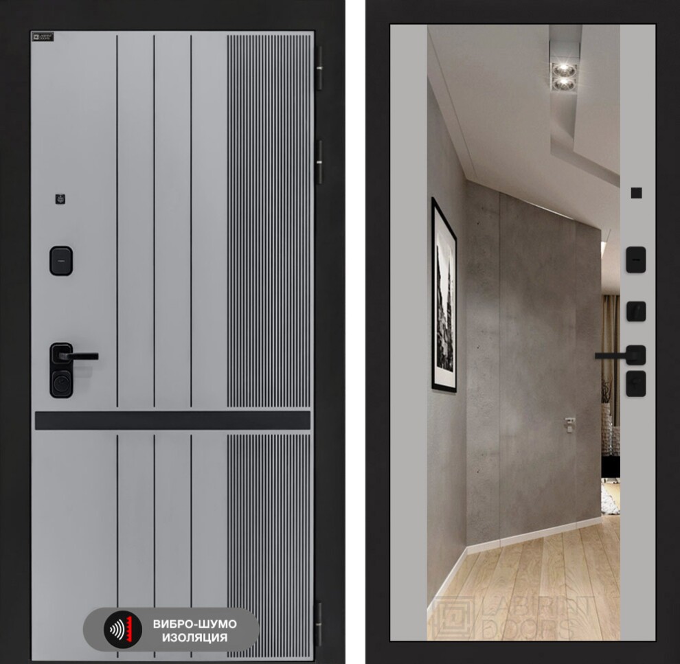 Входная дверь SKYLAB с Зеркалом Максимум - Грей софт