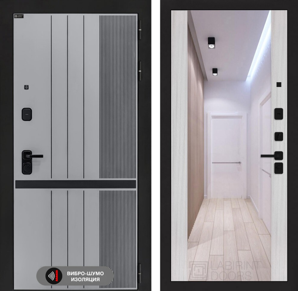 Входная дверь SKYLAB с Зеркалом Максимум - Сандал белый