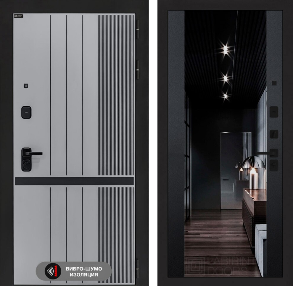 Входная дверь SKYLAB с зеркалом тонированным Максимум - Черный кварц