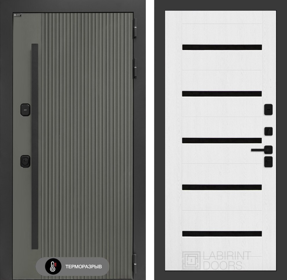 Входная дверь Термолаб 1 тепло 01 - Белое дерево, стекло черное
