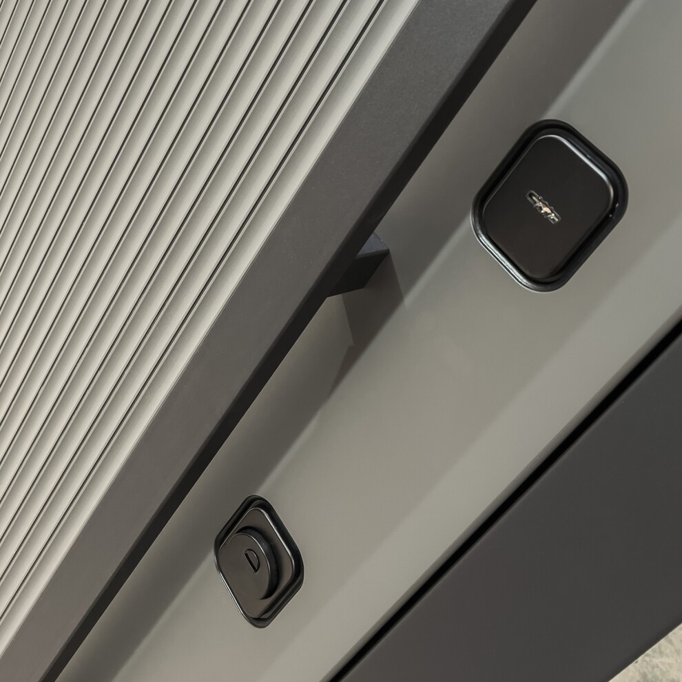 - Фурнитура в черном цвете: врезная броненакладка, сувальдные накладки, дверная ручка, ночная задвижка, регулируемый эксцентрик.