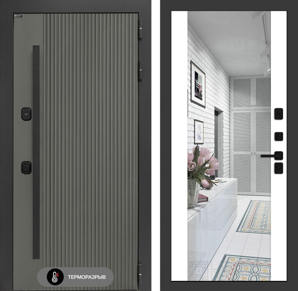 Входная дверь Термолаб 1 тепло с зеркалом Максимум - Белый софт