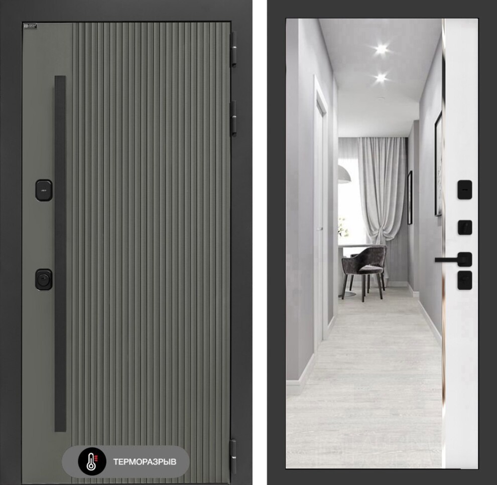 Входная дверь Термолаб 1 тепло с зеркалом Панорама - Белый софт